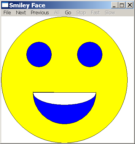 uses Ch QuickAnimation to draw and animate a smiley face shown below.