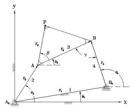 fourbar.setLinks(r1, r2, r3, r4, theta1);