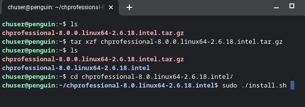 tar xzf chprofessional-8.0.0.linux64-2.6.18.intel.tar.gz