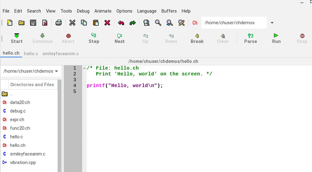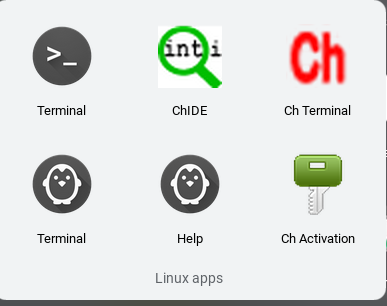 After you are done with the installation, you can find the ChIDE and Ch Terminal icon within the Linux app from the launcher, click the icon to run ChIDE.