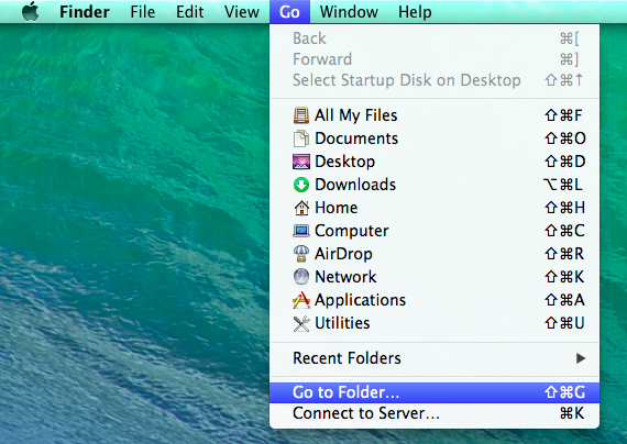 3. Open a new Finder window and on the top bar click Go -> Go to Folder